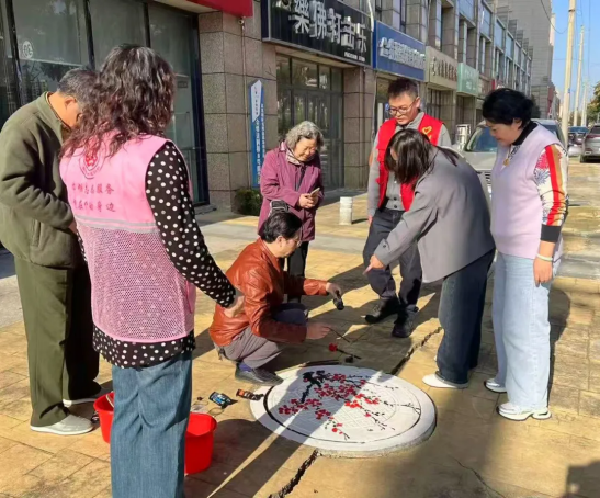居民围绕“梅兰竹菊”主题对井盖进行艺术创作。