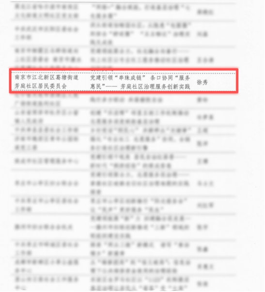 近日,中国社会工作联合会城乡社区工作委员会正式公布“2025城乡社区治理服务资料库”入库名单,南京江北新区葛塘街道芳庭社区的《党建引领“串珠成链”条口协同“服务惠民”——芳庭社区治理服务创新实践》案例被纳入“城乡社区群众性自治和志愿服务资料库”,为拆迁安置小区基层治理提供了“芳庭经验”。