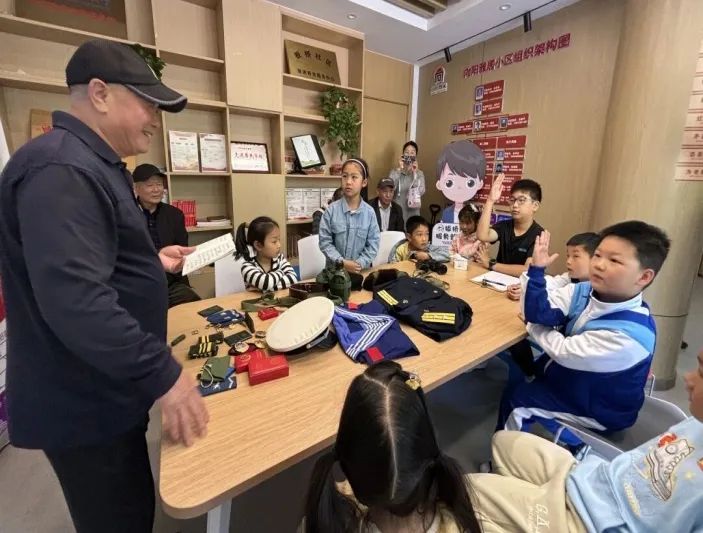 姚叔的“说事点”位于板桥社区胜利南苑,由一个小车库改造而成。这间不足6平方米的退役军人服务角虽然狭小,却承载着整个小区居民的喜怒哀乐。无论是家庭琐事还是邻里矛盾,姚叔都耐心倾听、认真调解,成为居民们信赖的“贴心人”。他还拿出自己珍视的海军服装,与小朋友们分享红色故事,让孩子们感受先辈们的英勇与奉献,传承红色基因。