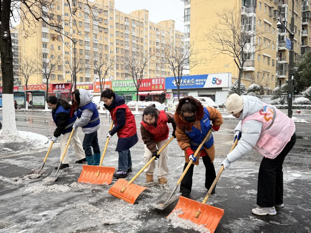 江北新区江浦街道组织志愿者开展扫雪除冰。