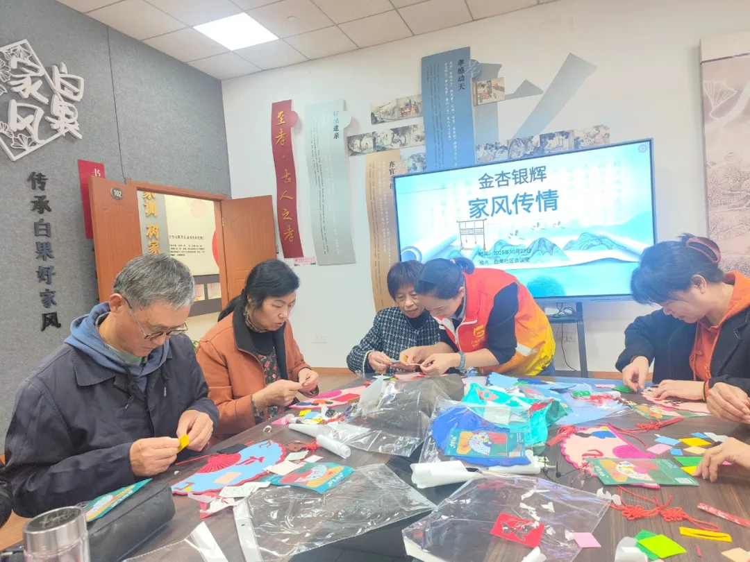 社区深处的“白果好家风馆”,则静静诉说着这片土地上的温情故事。馆里记录着老党员王洁二十余年默默助学的善举,也展示着“银发党员工作室”里常年忙碌的身影。这些身边人的故事,化作孩子们听得懂的诚信故事、孝亲道理,成了最生动的教材。志愿者们会带着孩子们来这里,讲讲诚信与孝亲的故事,也分享剪纸、编结这些老手艺。专业社工也常驻于此,倾听居民的烦心事,调和家庭的小摩擦,用专业守护社区的和谐。