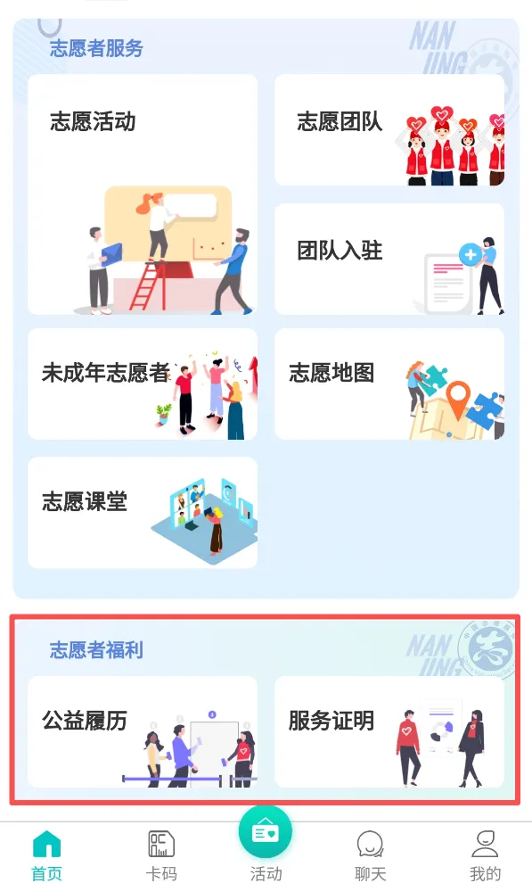 在“南京志愿服务信息管理平台”生成的公益履历或服务证书。