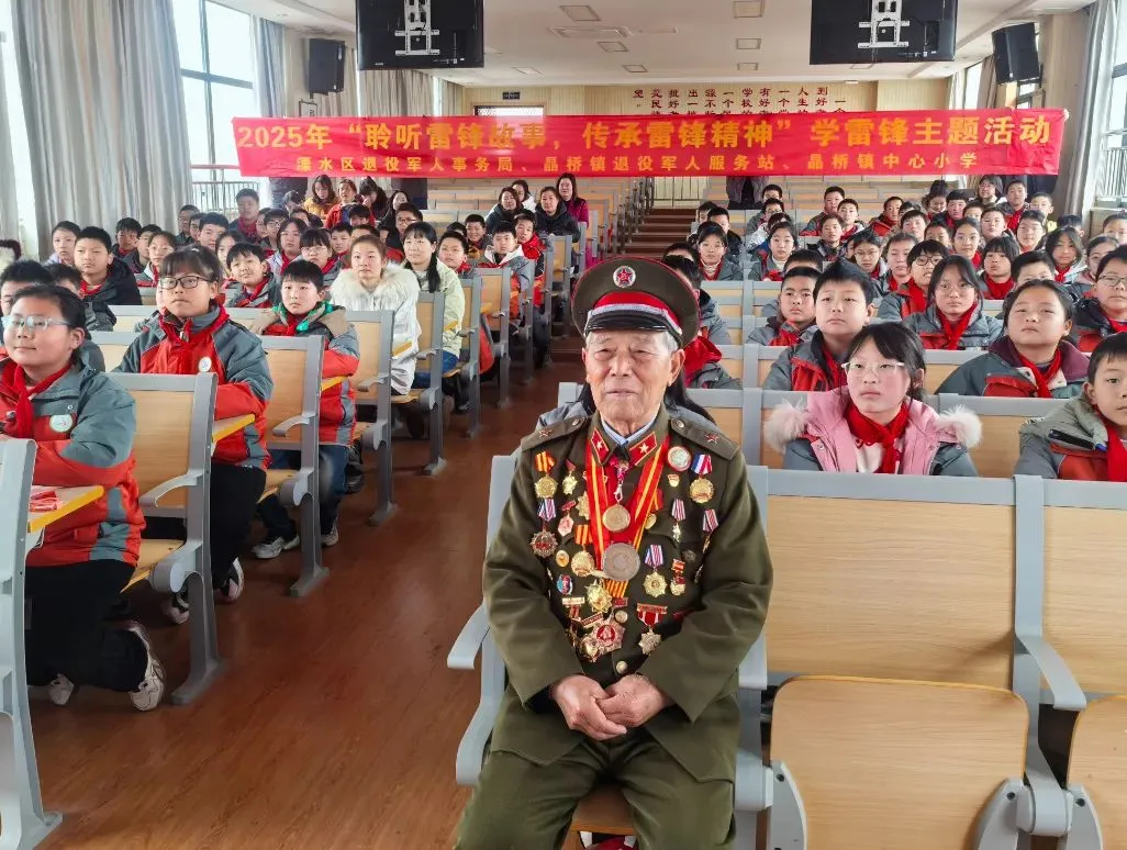 雷锋生前战友、全国学雷锋标兵、全国模范退役军人赵明才,实地走进晶桥中心小学,与百名师生、退役军人代表齐聚一堂,采取沉浸式学习与互动,感悟雷锋精神时代内涵。通过一张张老照片、一段段珍贵回忆,生动讲述了雷锋同志爱岗敬业、无私奉献的动人故事。
