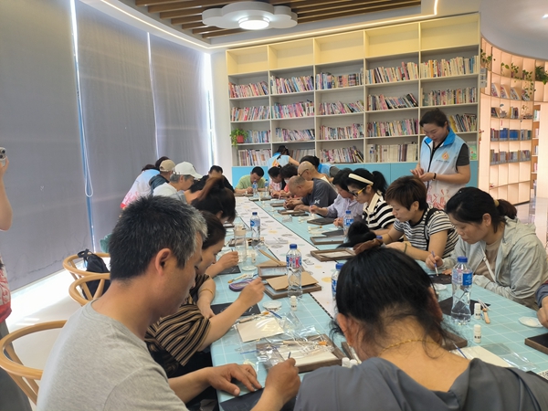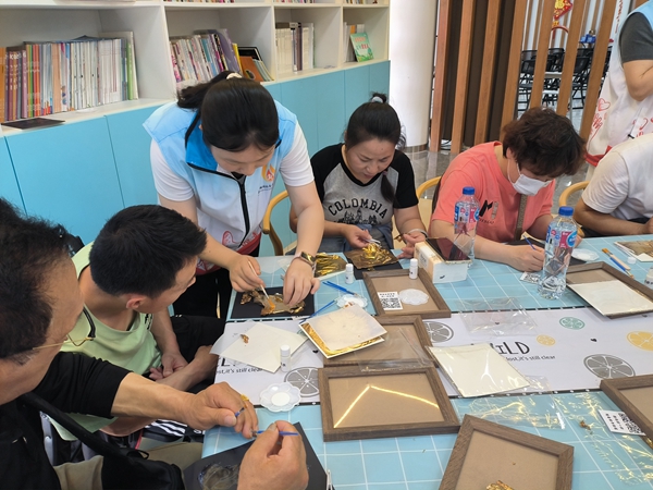 为增强普法趣味性,活动创新引入非遗金箔工艺。在大学生助残志愿者的指导下,参与者以《宪法》为创作主题,用金箔纸精心创作法治宣传画。他们将“法律面前人人平等”“公民权利义务”等抽象的法律概念,巧妙转化为一幅幅精美的具象艺术作品。这些金箔画作不仅充分展现了传统文化的独特魅力,更以生动鲜活的形式,让法治精神如春风化雨般深入人心。“用金箔画宪法,既能学习法律知识,又能体验非遗,这样的普法方式太有趣了,我们特别喜欢!”活动参与者纷纷用手语表达对此次创新普法形式的高度认可。