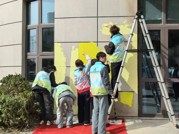 前期,来自南京工程学院与南京科技职业学院的十余名大学生志愿者,围绕“聚志愿微光、点亮文明葛塘”主题,在实践所以墙为纸、以彩为墨,开展艺术创作,以象征温暖与指引的路灯为核心视觉元素,寓意志愿服务如星光般照亮前行之路。历经近五个小时的精心绘制,一幅长2.3米、高3.5米的主题墙绘圆满呈现。画面色彩明快、构图生动,既充满青春气息,又承载文明温度。作品特别设置互动留影区,吸引居民从“观赏者”转变为“参与者”,使墙绘成为社区中可驻足、可互动、可传播的文明风景线,推动新时代文明实践以更鲜活的形式融入百姓生活。