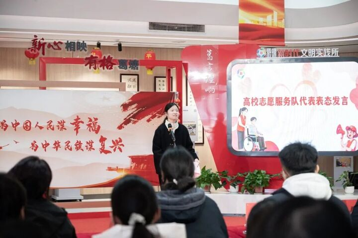 1月15日下午,葛塘街道高校志愿服务队成立仪式正式举行。姜小勇在致辞中指出,高校是人才培养的摇篮,街道是实践锻炼的舞台,期待通过校地协同的新模式,让志愿服务成为连接校园与社会的桥梁。
