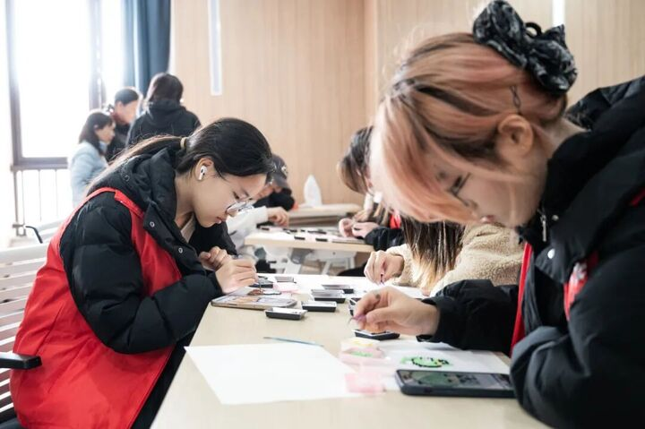 在拼豆手工活动现场,高校志愿者与社区居民齐聚一堂,共同感受手作迎新的乐趣。在志愿者细致指导下,居民们巧妙组合各色拼豆,逐步制作出“福”字、灯笼等富有年味的作品。活动现场气氛温馨,笑语不断,青年与长者在互动中交流手艺、分享故事,情感在协作中自然融合。部分成品赠予现场居民,传递了诚挚的新春祝福,也体现了志愿服务温暖双向流动的内涵。