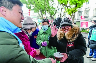 “没想到在送货点也能喝上这么地道的腊八粥,身上暖和,心里更暖和!”快递小哥小刘满面笑容地表示感谢。