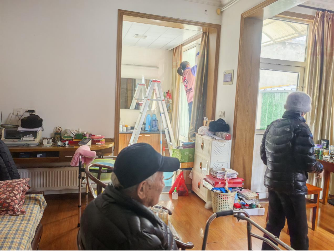 “年纪大了,站在高处擦窗户,是心里想做却实在做不到的事了。真是太感谢社区,感谢这些好心的姑娘们!”看着眼前明净的窗户,张典煌老人握着志愿者的手,不住地表达谢意。邢田才老人的家中也同样洋溢着温暖与感激。