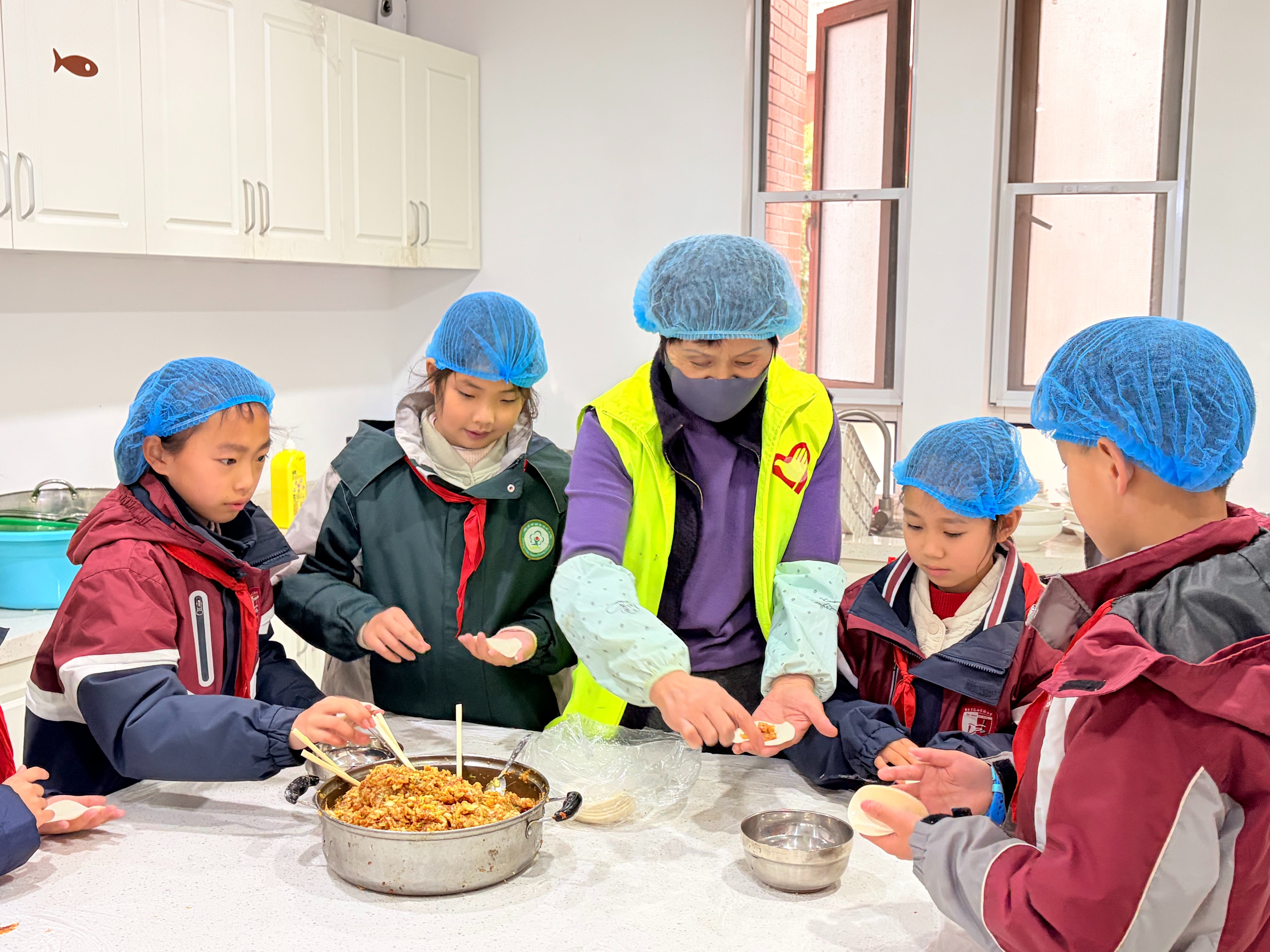 包饺子现场同样热闹非凡。社区“邻里美食传帮带”队伍牵头,志愿者为主力,部分青少年积极参与其中,大家聚聚一堂,揉面、拌馅、擀皮、包饺子,分工明确、默契十足。鲜嫩的肉馅、清爽的素馅,在一双双巧手下,变成了一个个饱满圆润的饺子。孩子们学得有模有样,虽然包出的饺子形态各异,却满含童真与爱心;志愿者耐心指导,时不时分享包饺子的小窍门,欢声笑语间,一盘盘寓意团圆的饺子新鲜出炉。